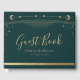 Mystical Green Gold Sun Moon Stars Wedding Guest Book