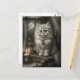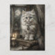Bring a touch of magic and mystery to your Halloween season with this enchanting postcard design. Featuring an adorable fluffy grey tabby kitten with big soulful eyes, sitting on an ancient spellbook by candlelight, this artwork blends gothic charm with cosy cottagecore vibes. A full moon glows through the window, enhancing the mystical atmosphere, while the kitten’s ornate pendant and the flickering lantern add a witchy touch. Perfect for Halloween greetings, gothic stationery, or as a collectable art print for cat lovers, fantasy fans, and anyone who adores witchy aesthetics. Whether sent as a seasonal card or kept as a keepsake, this design captures the perfect balance between cute and spooky.