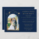 Mystical Happily Ever After Blue Gold Sun Moon Astronomy Wedding Reception Celebration Invitations Invites Einvites features gold sun, moon and stars with a golden frame on a blue background with your favourite photo inside. Personalise with your wedding reception celebration information. Available as a physical paper invitation and instant download printable digital invitations. Designed for you by Evco Studio www.zazzle.com/store/evcostudio