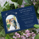 Mystical Happily Ever After Blue Silver Sun Moon Astronomy Wedding Reception Celebration Invitations Invites Einvites features silver sun, moon and stars with a silver frame on a blue background with your favourite photo inside. Personalise with your wedding reception celebration information. Available as a physical paper invitation and instant download printable digital invitations. Designed for you by Evco Studio www.zazzle.com/store/evcostudio