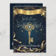 Mystical Key Birthday | Elegant Gold & Navy Invitation