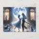 The image depicts two anthropomorphic cats engaged in a dance on a cobblestone street. The male cat is wearing a suit and tie, while the female cat is adorned in a flowing dress. They are surrounded by four kittens watching them, each exhibiting playful behaviour. The scene is set at night with an oversized full moon in the background, casting a soft glow over the entire scene and creating an enchanting atmosphere. The architecture suggests an elegant, old-fashioned setting with tall columns and arched windows. This whimsical portrayal of human-like animals in a romantic setting evokes fairy tale or fantasy themes.