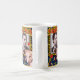 Dogs love classical music. At some animal shelters, the dogs go to sleep each night with the soothing sounds of classical music. When the music begins, they all stop barking and settle down to sweet dreams. The designs in this "Dogs love classical music." series celebrate the intuitive connection between dogs and this wonderful music. The design on this mug features a portrait of the composer Gustav Mahler. The portrait is in an ornate gold and wood frame, on a wallpaper background of deep marine blue, with twirled red ribbons, green leaves and little song birds. In front is a photo of a dog, commenting (in English and French), and pointing with red arrows to the composer. The text says "Mystical Mahler".