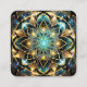 Beautiful mandala design in bright colours, with sparkling gold effect on a black background