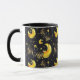 Embrace the magic with this mystical mug featuring a captivating design of golden moons and bats against a sleek black ceramic backdrop. Perfect for coffee, tea, or hot cocoa, this 11 oz combo mug combines style and durability with a comfortable handle.