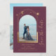 Mystical Plum Gold Sun Moon Stars Space Save The Dates features a gold sun, moon and stars frame on a plum background. Inside is your favourite photo and your custom save the date information. Add an additional photo on the reverse. Personalise by editing the text in the text boxes. Designed for you by ©2022 Evco Studio www.zazzle.com/store/evcostudio