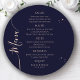 Mystical Rainbow Dark Navy Blue Sun Moon Stars Space Cosmic Astronomy Celestial Wedding Menu Cards features simple stars on a dark navy blue background with your menu details in the centre in modern peach calligraphy script. Personalise by editing the text in the text boxes provided. Designed by Evco Studio www.zazzle.com/store/evcostudio
