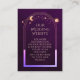 Mystical Rainbow Deep Plum Sun Moon Stars Astronomy Space Celestial Wedding Website RSVP QR Code Enclosure Cards features rainbow coloured sun, moon and stars frame on a deep plum background. The text can easily be personalised with your names, wedding website, scannable QR code and message for a unique one of a kind wedding design to keep your friends and family up to date about your upcoming special day. Designed for you by Evco Studio. View www.zazzle.com/store/evcostudio for more products in this collection