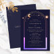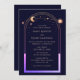 Mystical Rainbow Sun Star Moon Astronomy Space Wedding Invitations features sun, moon and stars with a pastel rainbow colored frame on a dark navy blue background. Inside is your custom wedding invitation information. Personalize by editing the text in the text boxes. Designed for you by ©Evco Studio www.zazzle.com/store/evcostudio
