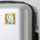 This design is inspired by a beautiful painted and embroidered decal on a Roman Catholic vestment worn for masses of the Blessed Mother. She holds a stem of lilies in her hands, a bouquet of roses frame her, a halo crowns her head.