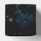 Deep blue and teal damask pattern favour box with luminous golden stars.