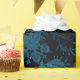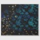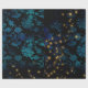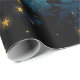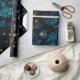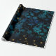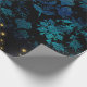 Deep blue, teal and purple damask pattern wrapping paper with luminous golden stars.