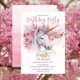 Mystical Unicorn Floral Girl 3rd Birthday Party Invitation