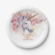 Mystical Unicorn Floral Girl 8th Birthday Party Paper Plate