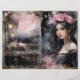 Mystical Victorian Lady Balcony Pink Junk Journal Page With different artwork on each side, vintage style, ladies and flowers in moonlight blues. For your junk journalling and scrapbooking projects.