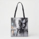 Mystical winged girl black and white urban tote bag