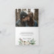 Front features a frame ofwinter flowers poinsettia and berries in watercolor tones, with a custom message in grey calligraphy lettering (shown with "thank you") and your name(s) on a white background.
