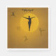 Within this enigmatic circle, a striking silhouette takes centre stage. A woman, her contours starkly black against the golden backdrop, strikes a graceful and expressive dance pose. Her form conveys strength and fluidity, drawing the eye with its allure.