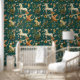 A menagerie of fantastical creatures — including dragons, unicorn-like horses, antlered deer-serpents, and whimsical fox-like beasts with lush swirling foliage and blooming flowers.