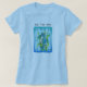 This tee shirt has a mythical aqua blue and white sea dragon with horns on his head holding green seaweed with his tail in an ornate blue frame with water bubbles. Customise your text with the template.
