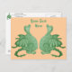 These two very cute little green dragons are stretching their wings and smiling, all their baby dragon scales are emphasised by a darker green outline that’s softly blended. they're a special pair of little green dragons that I created in pencil some time ago, I digitally enhanced the image of the drawing to become a vibrant green colour. The happy cute dragon is unique and completely original, he’s sure to get lots of attention wherever you go, This little dragon can only be seen on products produced by artoriginals. This is a customisable post card. you can persoinalize it with your own text.
