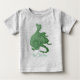 This very cute little green dragon on this customisable infants t-shirt is stretching his wings and smiling, all his baby dragon scales are emphasised by a darker green outline that’s softly blended. He’s a special little green dragon that I created in pencil some time ago, I digitally enhanced the image of the drawing to become a vibrant green colour. The happy cute dragon is unique and completely original, he’s sure to get lots of attention wherever you go. The text just below the baby dragon on the front and back of this great little baby t-shirt can be personalised with your own text. This little dragon can only be seen on products produced by artoriginals.