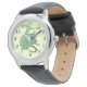 This very cute little green dragon is stretching his wings and smiling, all his baby dragon scales are emphasised by a darker green outline that’s softly blended. He’s a special little green dragon that I created in pencil some time ago, I digitally enhanced the image of the drawing to become a vibrant green colour. The happy cute dragon is unique and completely original, he’s sure to get lots of attention wherever you go, This little dragon looks great on this cool watch with numbers and can only be seen on products produced by artoriginals. This is a customisable dragon watch, you can personalise it with your own text.