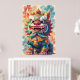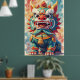 This poster is a vibrant and colorful illustration of a mythical creature, likely a Okinawan Guardian Lion (often called Shisa) or a representation of a Lion Dance mask/costume.