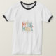 The t-shirt features the text "Mythos Marches" in a bold, multicolored design. Each letter is a different vibrant hue, creating a dynamic and eye-catching look.