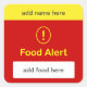 n1 - CUSTOMIZE THIS ~ Food Alert. Square Sticker
