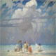 Featuring a towering figure emerging from the clouds above a group of children on a sun-drenched beach, this piece perfectly balances classic realism with a sense of wonder. Professionally restored and upscaled to ensure every oil brushstroke remains crisp, this fine art print is an ideal choice for a coastal nursery, a sophisticated study, or any vintage art collection.