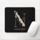 Letter N monogram floral. Letter N in golden brown texture accented with green watercolor compound leaves, flower blossoms and gold dust. Persoalized with name in matching font.