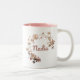 Embrace the beauty of nature with this stunning personalised mug, featuring a delicate floral wreath design. The intricate arrangement of pink and beige flowers, accented by lush green leaves, elegantly frames the name ‘Nadia’ in a sophisticated cursive font. This charming mug is perfect for sipping your favourite hot beverage and makes a thoughtful gift for loved ones or a delightful addition to your own kitchen collection.