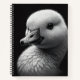 A touch of downy softness for your thoughts. This premium notebook features the charming black and white portrait of Nadine the Goose, a baby gosling. The high-definition print captures every detail of its delicate features and fluffy down, creating a monochrome scene of pure innocence on the cover. Perfect for journaling, planning, or creative notes.