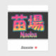 Electric retro 80s design celebrating Naeba, one of Japan's most legendary ski destinations. This vibrant design features bold Japanese kanji characters (苗場 - Naeba) in hot pink and electric yellow with neon blue and purple outlines, complete with paint splatter effects for authentic street art vibes.
