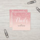 Trendy Elegant Modern Stylish Nail Artist Pink Rose Gold Square Business Card with Social Icons! (Facebook, Instagram, Twitter) Easy to Customise all texts & colour! Elegant hand lettering style typography in white on Pink Gold glitter ombre on modern background. For your creative business or personal use, interior designer, decorator, Handmade Shops, Artist, Consultant, Stylists, Designers, Event Planner, Wedding Planner, MakeUp Artists, Salon and other all Creative Professionals. Perfect for many visual creative edge professions. Let the customers know who you are! (*Glitter is NOT foil, an image)