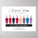 Nail Polish Colour Set Nail Salon Poster has a script typography business name on a plain white background highlighting the set of nail polish in different colours. A modern poster to promote your nail salon business, get yours now. Please message the designer if any further customisation assistance needed.