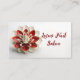 A beautiful red, white and gold 3D representation of a lotus flower adorns this business card that could be used for your nail salon or beauty clinic.