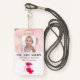 Modern Photo ID Nail Salon Employee Badge. Design featuring of rose gold & pink background, single photo, business name, profession and name . Personalize with your contact details. Modern ID badges make it simple for customers and clients to identify employees. To edit this template click customize further.