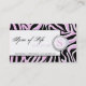Promote your nail technician practice or spa and salon with this light pink, black and white modern and stylish rough textured zebra print and diamonds business card. This business card features a rough, textured zebra (animal) print background with a rectangular swatch adorned by a circle bordering a monogram with three round diamonds. This bold, modern, and stylish business card is also a great match for fashion designers, the music industry, singers, musicians, real estate agents, handbag designers, clothing stores, the entertainment industry, dancers, actresses, makeup artists, jewelery stores, jewelers, diamond sales, retail, cosmetologists, models, agencies, dance studios, party planners, event planners, and more. ©2011 Pam's Designs.