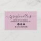 An editable nail artist business card template design, with social media handles and vintage typography on a dusty pink background. The back is pink and black.