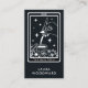 A unique tarot card style white on black business card for a nail tech. A unique style mashup of the tarot and your occupation.