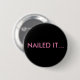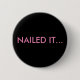 The "NAILED IT" Buttons and Pins for Backpacks feature the words " Nailed it" in pink against a black background for a dramatic presentation for a pin you will love to gift or wear easily.