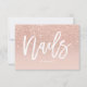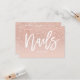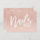 An elegant modern, stylish nails artist gift certificate business card with elegant script hand lettering style typography in white on a faux rose gold glitter and pastel blush pink trendy and elegant background. If you need any customisation, don't hesitate in contacting me