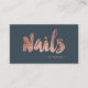 A modern, stylish nails and beauty business card with modern hand lettering style brush typography in faux rose gold foil on a trendy and elegant charcoal background. If you need any customisation, don't hesitate in contacting me