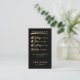 This cool and clever business card is perfect for any nail technician and beauty salon. It features a "Beauty Checklist," that offers and funny and light way to suggest a customer's next appointment. It features the phrases, "Makeup is slaying. Hair is on point. Eyebrows on fleek. Nails are poppin'," in a handwritten font. The colour scheme is a classic black, faux printed gold metallic, and white that will fit most salon vibes. It's professional, unique, and the perfect way to stand out in your customers' minds.