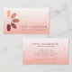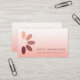 The front of this Modern Manicurist & Pedicurist Business Card features elegant logo made of petals which forms flower. Petals have different shades of peach, brown and rosy. Logo is placed above light peach background with soft white glitter sparkles. Your personnalisable name and occupation are placed on the right of the logo and at the lower part of the card. Personalize your contact information on the back side.