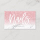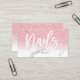 An elegant modern, stylish nails business card with elegant script hand lettering style typography in white on a faux pink glitter ombre on modern white marble background. If you need any customisation, don't hesitate in contacting me.