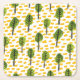 Green and black watercolor naive simple hand paint tree seamless pattern isolated on yellow, golden strokes background. Illustration for print, fabric textile, design greeting cards. Repeat texture.