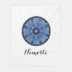 Fleece blanket with a blue floral spiritual lotus flower mandala print and personalised Namaste text. Matching bath decor available at the ScriptoGraphic Design Store.